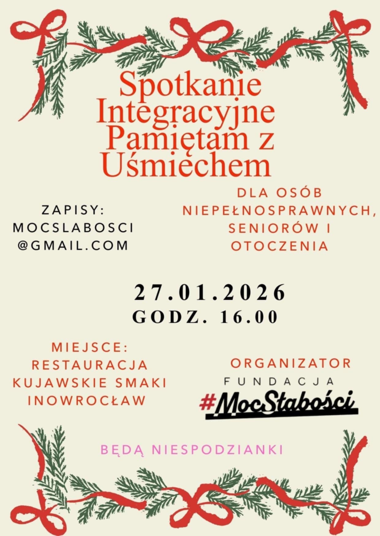 Organizatorem wydarzenia jest Fundacja #MocSłabości. Zapisy prowadzone są drogą mailową. Organizatorzy zapowiadają również niespodzianki dla uczestników spotkania.