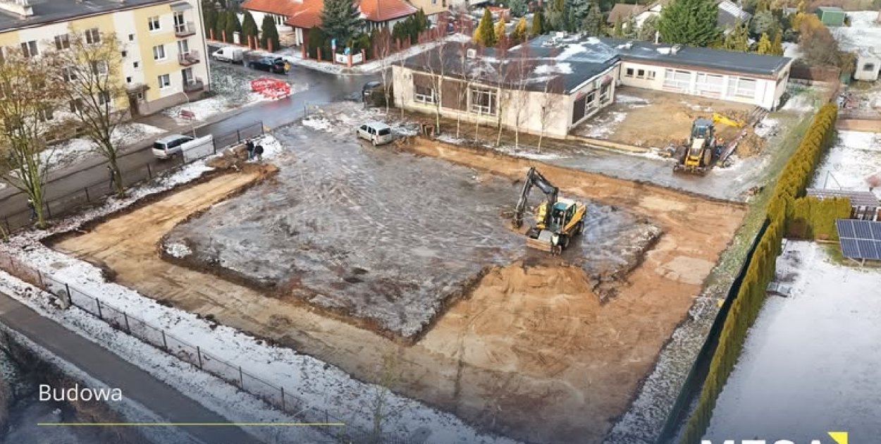 W ramach prowadzonych działań wykonano wykop pod fundamenty nowego obiektu. Równolegle realizowane jest przygotowanie zbrojenia pod ławy fundamentowe. Zgodnie z zapowiedziami, po ustąpieniu mrozów planowane jest zwiększenie tempa prac budowlanych.