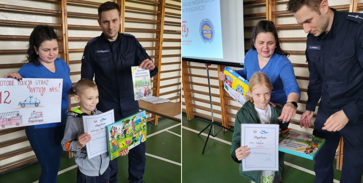 Podczas wizyty rozstrzygnięto także konkurs plastyczny „Numer alarmowy 112 nie dla zabawy”, organizowany wspólnie przez szkołę i policję. Laureaci – sześciu uczniów – otrzymali nagrody w postaci gier planszowych „Bezpieczne Miasteczko”, ufundowanych przez Powiat Inowrocławski. Dodatkowo wręczono upominki w postaci policyjnych gadżetów.