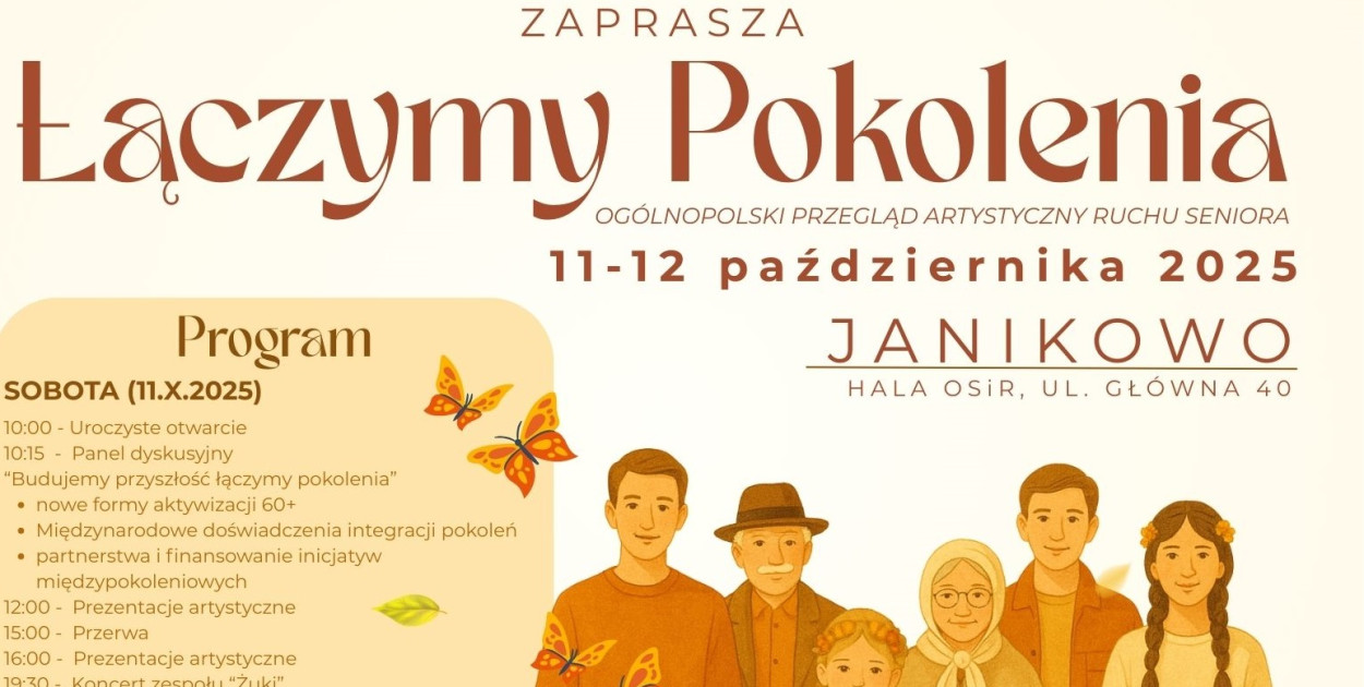 W dniach 11–12 października 2025 roku w Janikowie odbędzie się wydarzenie pod hasłem „Łączymy Pokolenia: ARS 2025”, organizowane przez Ogólnopolskie Stowarzyszenie Seniora w Bydgoszczy we współpracy z Miejsko-Gminnym Ośrodkiem Kultury w Janikowie.