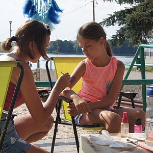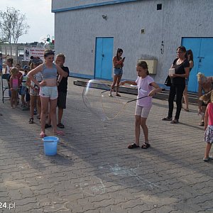Przy przystani "Kormoran " w Janikowie najmłodsi mieli okazję skorzystać z wielu darmowych niespodzianek takich jak dmuchane place zabaw, popcorn, gry i zabawy z animatorami czy słodki poczęstunek nie zabrakło oczywiście warsztatów, które poprowadziła Ilona Gawrońska z CreativeArt oraz stanowiska z malowaniem twarzy, tatuaży czy plecenia kolorowych warkoczyków.