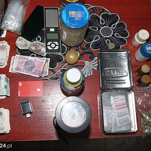 Podczas przeszukania mieszkania oraz przynależnego garażu funkcjonariusze ujawnili susz roślinny, substancję w formie kryształu oraz biały proszek. Łączna waga zabezpieczonych środków wyniosła blisko 1,5 kilograma. Ponadto policjanci znaleźli wagę elektroniczną, woreczki strunowe, młynek, osiem telefonów komórkowych oraz gotówkę w kwocie blisko 27 tysięcy złotych. W lokalu ujawniono również 2 520 sztuk papierosów bez polskich znaków akcyzy.