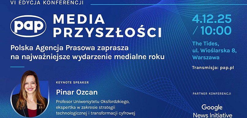 Już 4 grudnia w Warszawie odbędzie się szósta edycja konferencji „Media Przyszłości”, organizowana przez Polską Agencję Prasową. Tegoroczną keynote speakerką będzie jedna z najbardziej wpływowych ekspertek świata technologii - prof. Pinar Ozcan z Uniwersytetu Oksfordzkiego, wyróżniona m.in. przez Thinkers50 oraz prestiżowy ranking Poets&Quants „40 Best Business School Professors Under 40”.